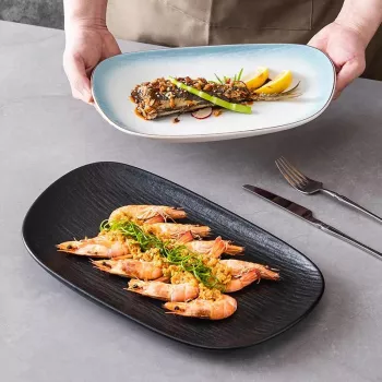 14” Elegant Rectangular Ceramic Sand Flow Dinner Plate – Modern Serving Platter