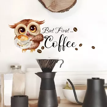 Cartoon Owl Coffee Cup Wall Sticker – Cute Kitchen & Café Wall Decor